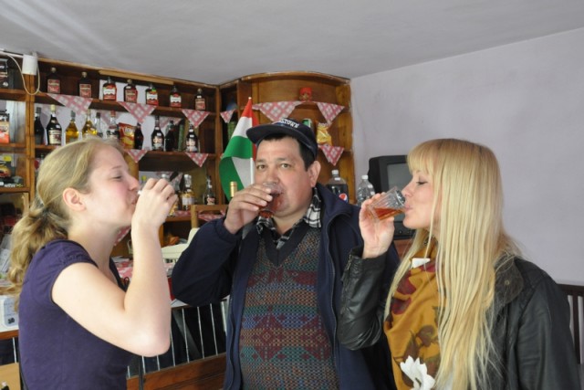 Wir fahren ins Dorf und treffen in der Dorfkneipe Bokor Lajos, einen Ungaren. Er empfiehlt uns eine Flasche, in der braune Flüssigkeit schwimmt. Drei Schnaps bitte, sage ich zu der Barfrau. Sie schenkt drei Gläser ein, die so groß sind wie meine Faust. Wir prosten uns zu und ziehen den Schnaps in einem kurzen Zug runter. Mit einem Klick schießen die zwei Knopfaugen auf dem flauschigen Bärengesicht wieder in meinen Kopf. Und brennen sich fest, wie der Schnaps in meiner Kehle.