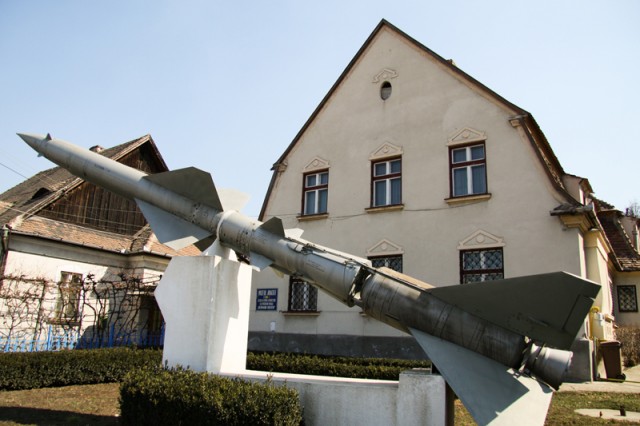 Raketenstatue vor dem Hermann-Oberth-Museum in Mediasch (Foto: Stefan Junger)